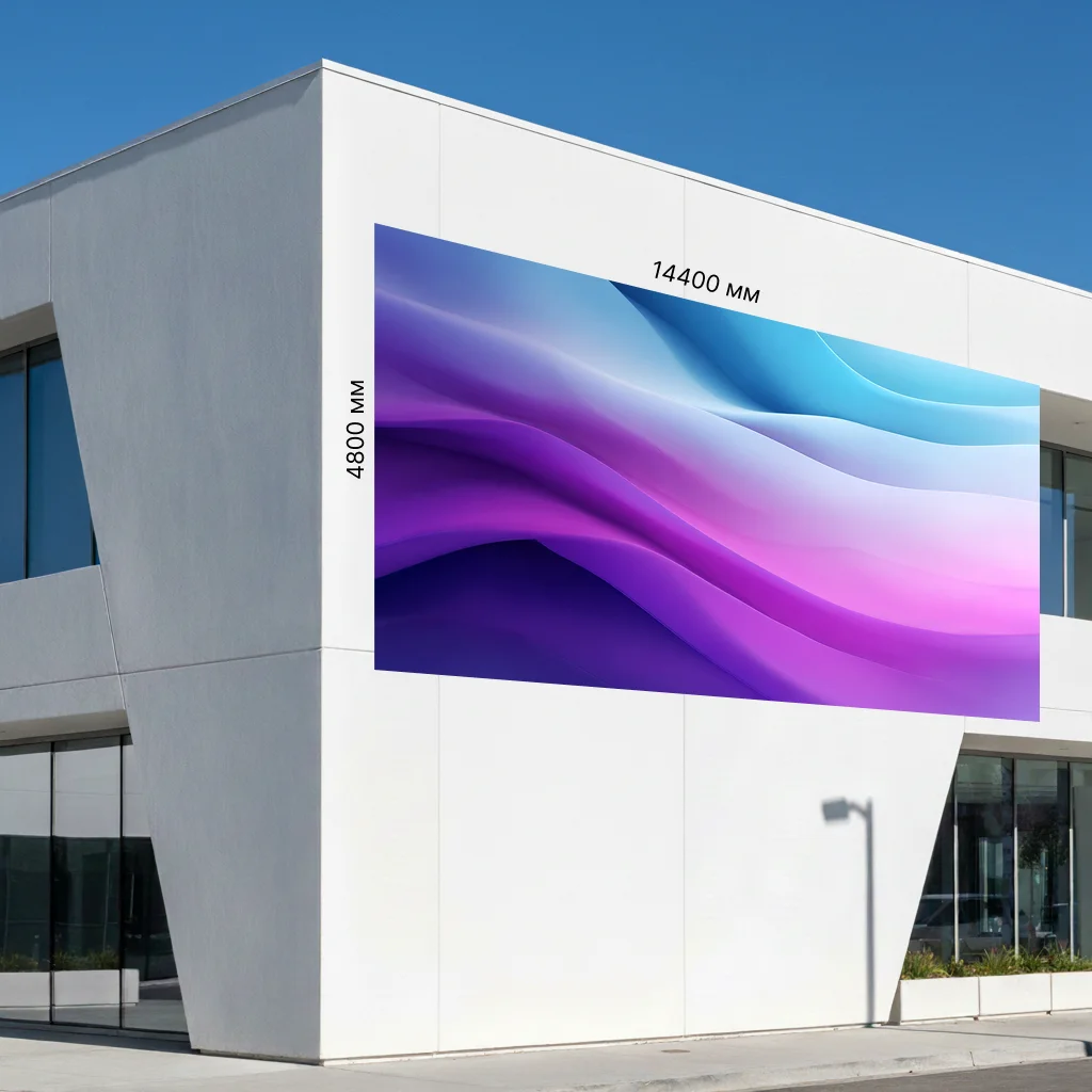 Светодиодный экран 14400×4800 мм (P8) - крупноформатный медиафасад для наружной рекламы с яркостью 5500 кд/м² и широкими углами обзора 160°/120°, обеспечивающий уверенную видимость контента днём и ночью.