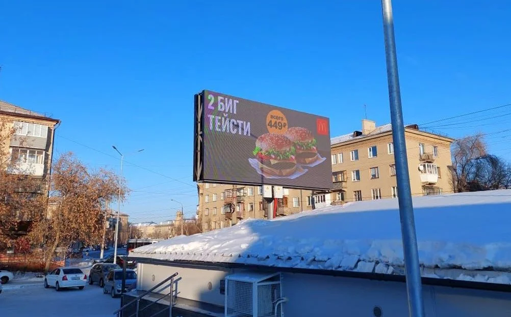 Двусторонний экран расположен на оживленном въезде (выезде) на территорию центрального рынка города Магнитогорска. Ежедневно по проспекту Карла Маркса проезжает несколько тысяч автомобилей и сотни пешеходов. В непосредственной близости от Центрального рынка расположена ул. Татищева, перекресток Ленинградская ул. — проспект Карла Маркса, сквер им. М.Ю. Лермонтова, остановка общественного транспорта.