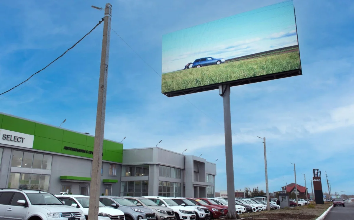 Светодиодный билборд p8 демонстрирует яркие ролики и статичные баннеры, высокое разрешение и отличная видимость делают его эффективным рекламным решением для регионального бизнеса, который работает с аудиторией автомобилистов.