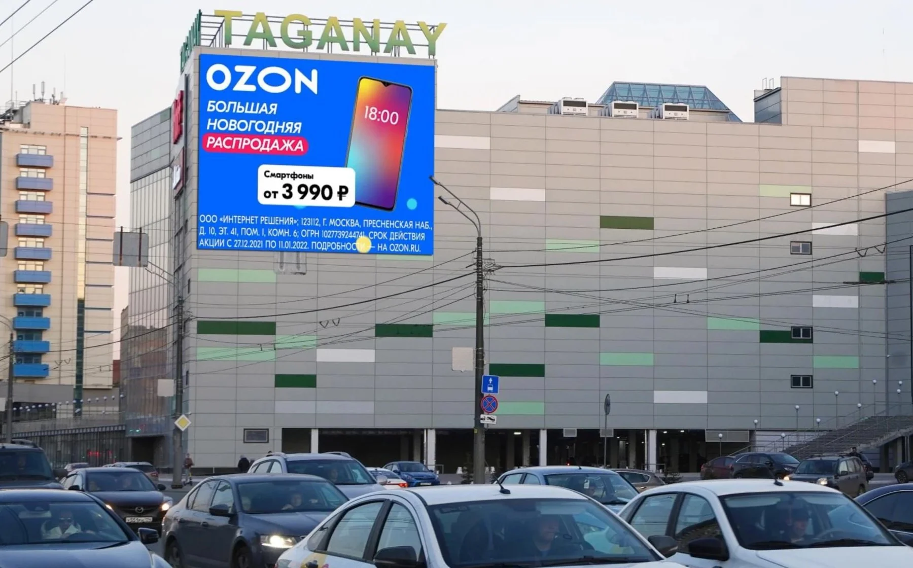 Медиафасад расположен в центре, на одной из самых загруженных улиц города - ул. Труда. Улица Труда является гостевым маршрутом и одной из главнейших транспортных артерий города. Медиафасад установлен на одном из крупных торговых комплексах Челябинской области ТРК «Таганай», на улице Труда. Улица Труда является гостевым маршрутом и одной из главнейших транспортных артерий города. Неоспоримым преимуществом медиафасада является то, что он расположен в эпицентре транспорта, пешеходов. Выгодное местоположение медиафасада осуществляется так же за счет того, что торговый комплекс расположен в самом центре города Челябинска. Вблизи него расположены ТРЦ Гагарин Парк, Radisson Blu, гипермаркет Spar, ЦПКиО им. Ю. А. Гагарина, Центральный стадион, множество банков и тд. Высокие транспортные и пешеходные потоки, ежедневные пробки.
