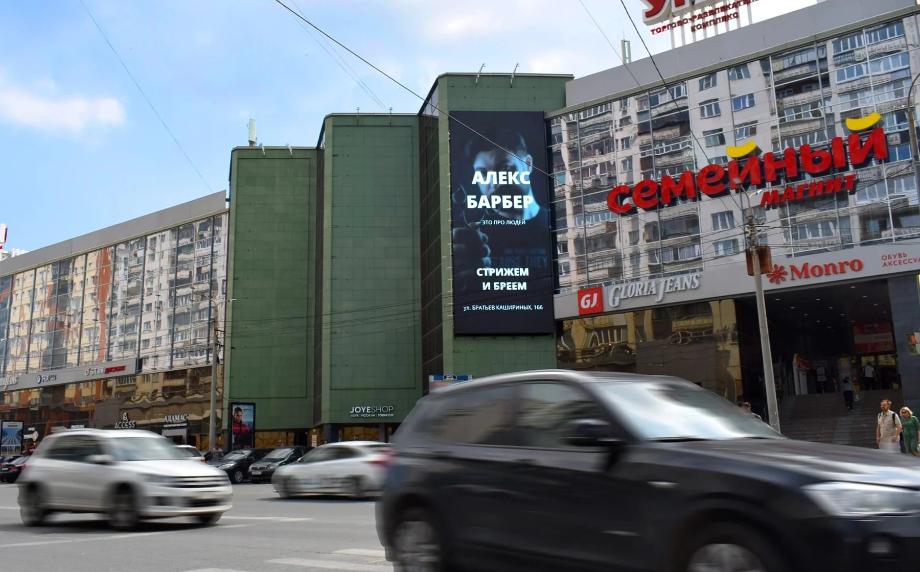 Вертикальный экран на входе в ТРК создаёт яркий цифровой акцент. Его формат позволяет эффективно транслировать как видеоролики, так и статичные баннеры.